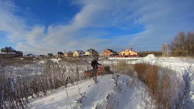 Первый снег.Цепи на колеса квадроцикла.Чистим снег. Ямаха гризли.