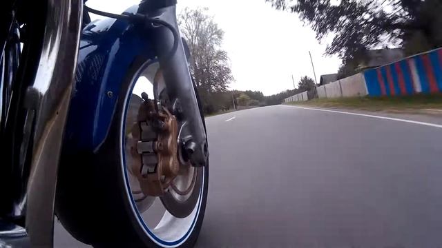 Лихач на мотоцикле обогнал меня как стоячего. Хорошо,что я увидел его в зеркало