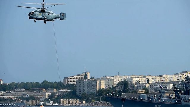 Парад в Севастополе. День ВМФ. Работа вертолета Ка-27 по поиску подводных лодок