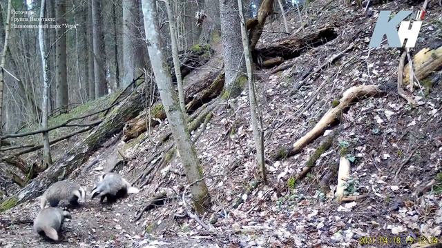 Барсуки затеяли игру в чехарду перед камерами в калужском лесу