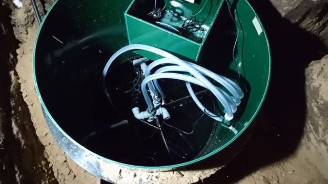 Монтаж дренажного насоса Aquario в септик Термолос. Корпус к центру, поплавок наружу 7 см от стяжки