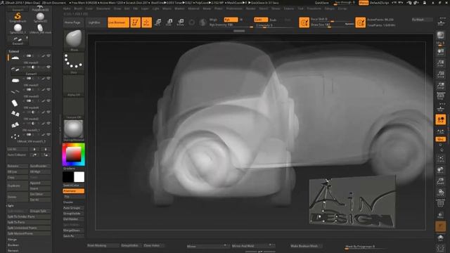 3D modeling a VW beetle car in Zbrush.