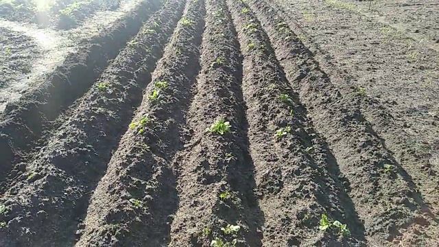 Обзор двух грядок картошки в конце мая / Уход