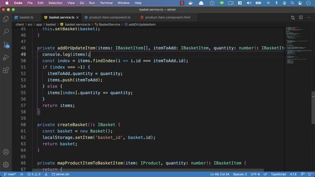 151 Adding the add item to basket in the component method