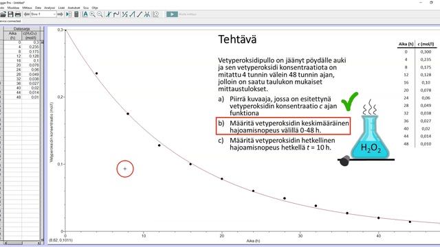 Reaktionopeuteen liittyvän kuvaajan piirtäminen ja analysointi Logger Pro 3 -ohjelmalla