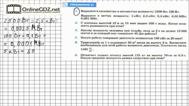 Упражнение №31(1) § 56. Мощность. Единицы мощности - Физика 7 класс (Перышкин)