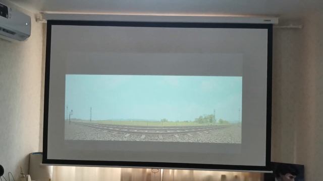 работа проектора HD- экран 250х200см, а рядом Тв в 32")