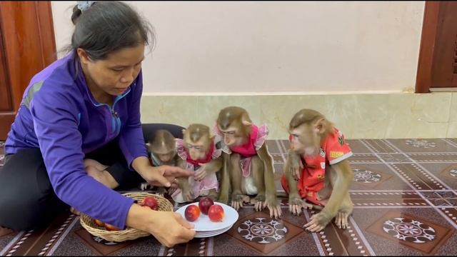 Lunch Time!! 4 Siblings Sit Eating Apple Together With Mom Very Sweet & Mouth Watering!!