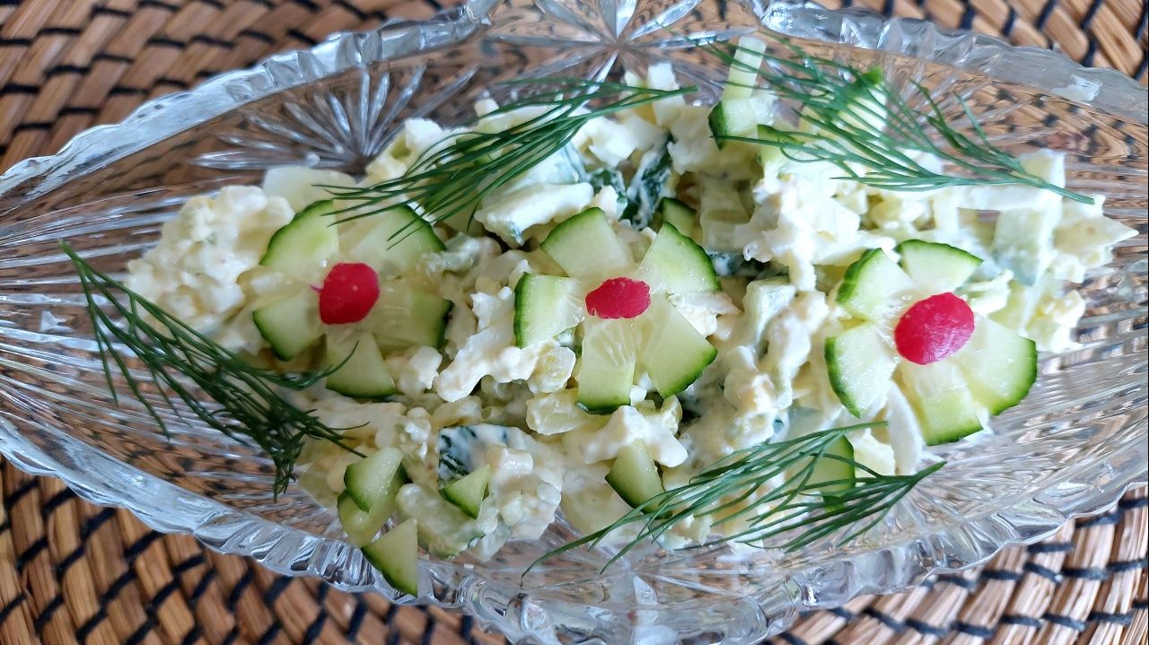 Салат с черемшой. Лёгкая пикантность, приятный аромат.