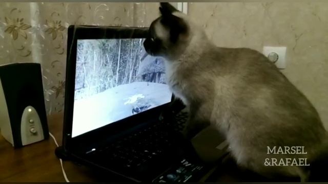 Как наша кошка впервые смотрит видео на ноутбуке.