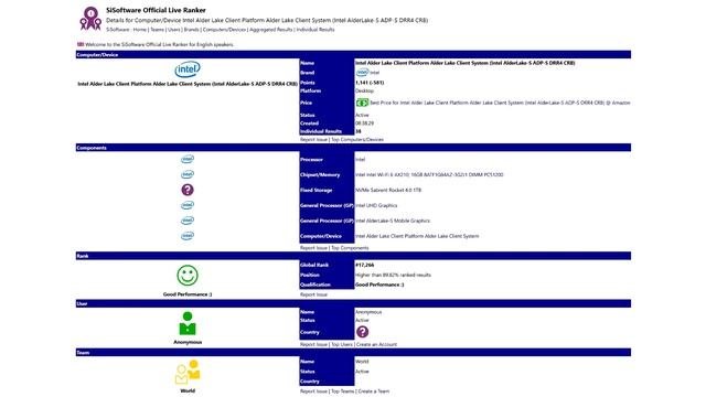 Intel Alder Lake S Processor with 16c 32t Hybrid Spotted on SANDRA Database