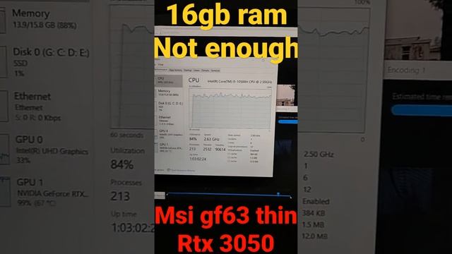 16 ram is also not enough for 1080 video editing in msi gf63 thin rtx 3050 ??