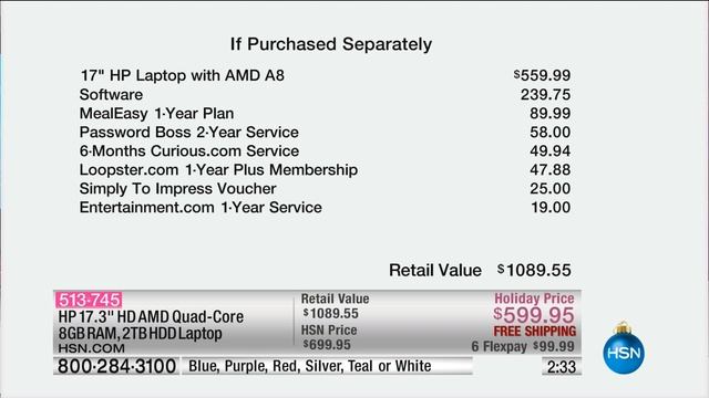 HP 17" AMD QuadCore, 8GB RAM, 2TB Hard Drive Laptop