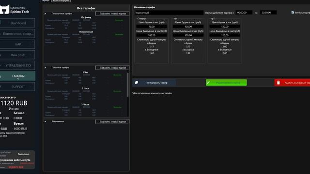 Настройка Тарифов CyberSoft Sphinx Tech