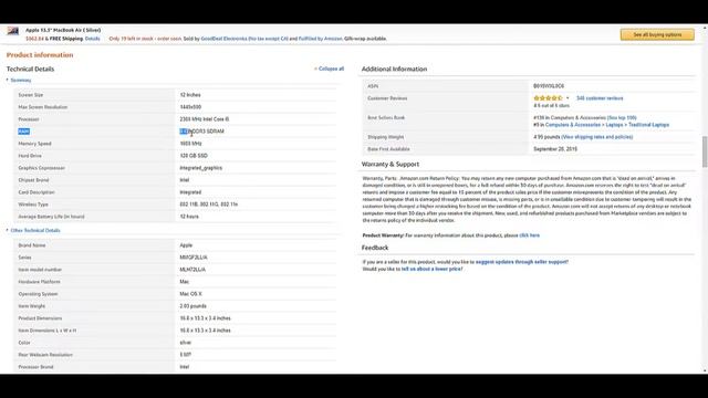 Apple 13.3" MacBook Air ( Silver) $862.84 & FREE Shipping.