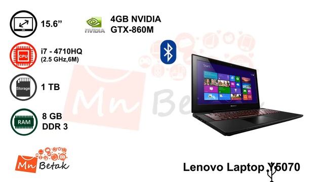 Lenovo Y5070 (i7-4710U - 8GB - 15.6" ,4GB nVidia GTX 860M, 1 TB) لاب توب لينوفو - MnBetak.com