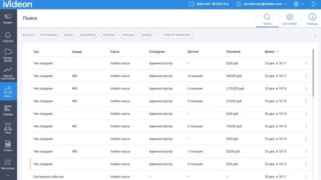 Подключение Ivideon Кассы