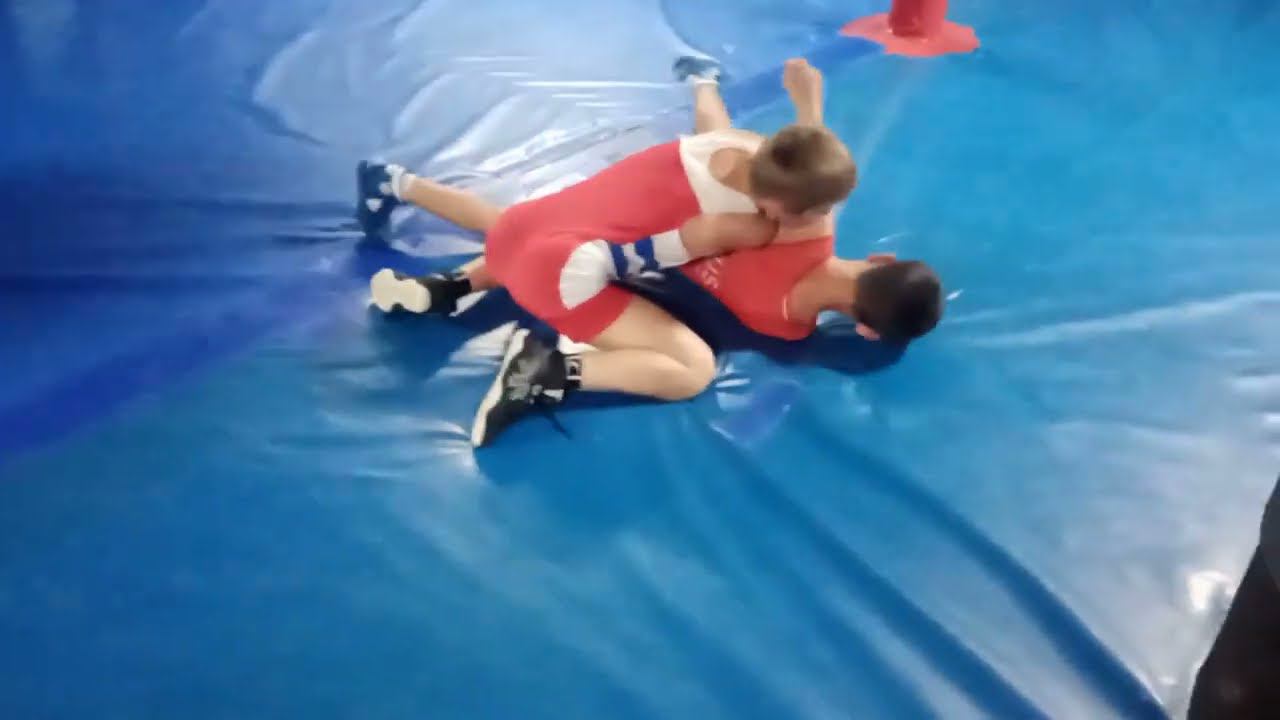 Тажудинов Ибрагим, в красном трико - на первенстве города по в/б в весе 54 кг. г.Махачкала - 2022 г.