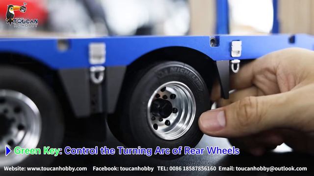 Fury Bear 1/14 3 axles goose neck blue metal trailer for Tamiya RC tractor truck.