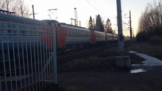 "На закате!" Электропоезд ЭД4М-0255 на станции Старый Петергоф