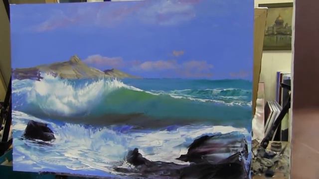 Пишем морской пейзаж, море кисточкой, мастихином урок Игоря Сахарова 1
