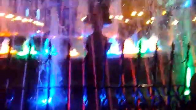 Красивый ночной фонтан на площади им. Ленина Хабаровск