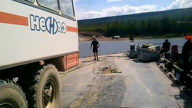 Алдан река, прелаз баржом!