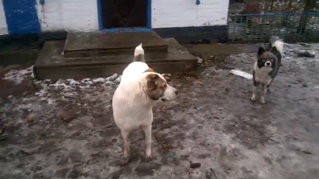 Аллабай и Шпиц дворовой ! Мои собаки. Alabai and Spitz are yard! My dogs.