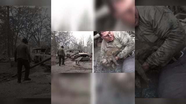Мужчина со слезами достал кошку после пожара