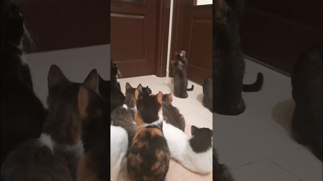smart cats.😚 soon they will learn to open the door😍🤩😹💞💝