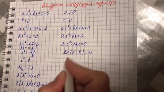 Квадрат теңдеудің түрлері 8 сынып алгебра