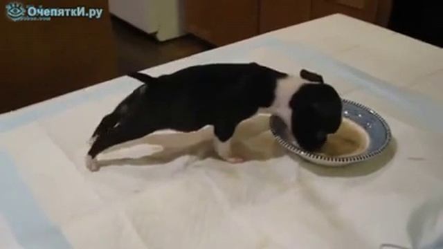 Собачка ест без задних лап
