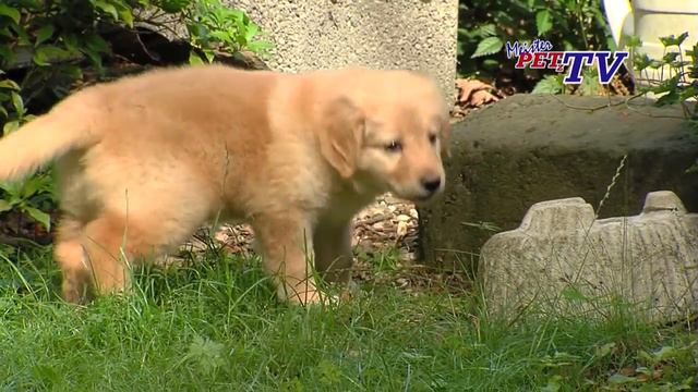 Щенок пытается сходить на горшок