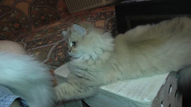 Котенок играется хвостом кошки сестры