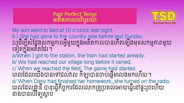 How to use past perfect tense & past perfect continuous tense - Teacher Sorn Dy