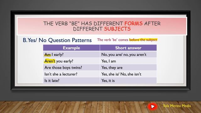 The Verb 'be' ||Statement Pattern || Yes/No Question || to be || Simple Present Tense