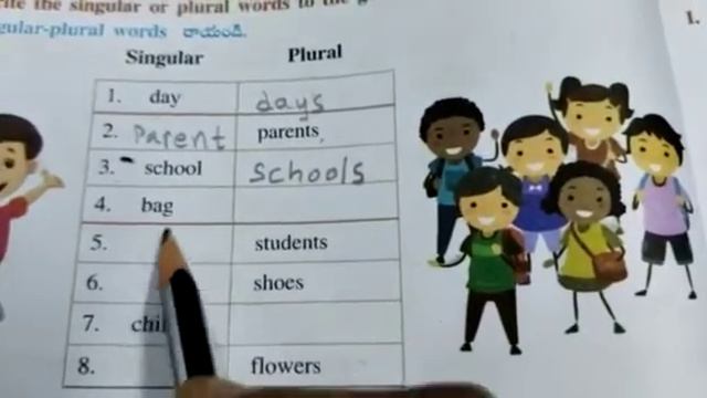 Worksheet 1.9 Workbook Mallika Goes to School Unit 1 Class 5 Singular and Plural
