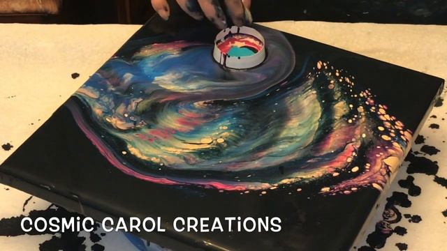 (75) COSMIC WATERFALL (Galactic series #1) floating open cup pour, acrylic pour, fluid art, #pearls