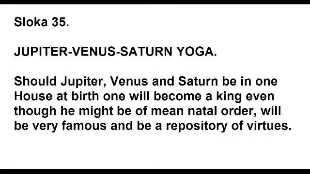 Jupiter, Venus and Saturn yoga Sloka 35 of Chapter 16 of Saravali