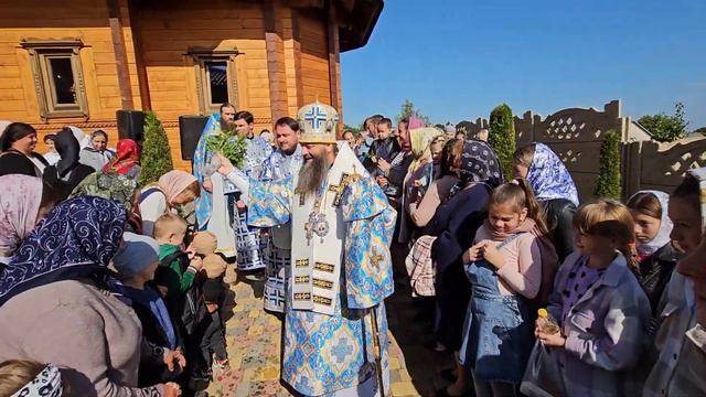 Митрополит Лонгин окропляет верующих Святой Водой 22.09.2023