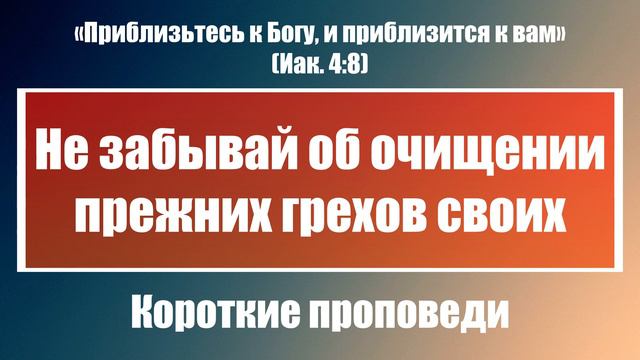 Не забывай об очищении прежних грехов своих | Короткие проповеди Христианские проповеди