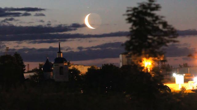 Восход Луны и Альдебарна над Петропавловской церковью и серебристые облака