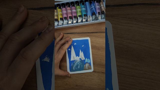 Домик в лесу | Christmas postcard #1 | Простая открытка гуашью