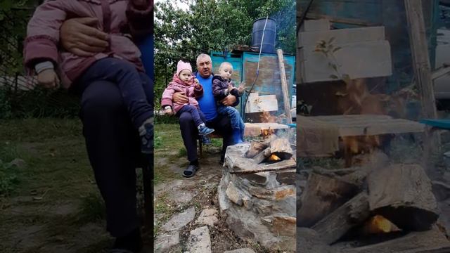 папа на даче с Лизой и Антоном