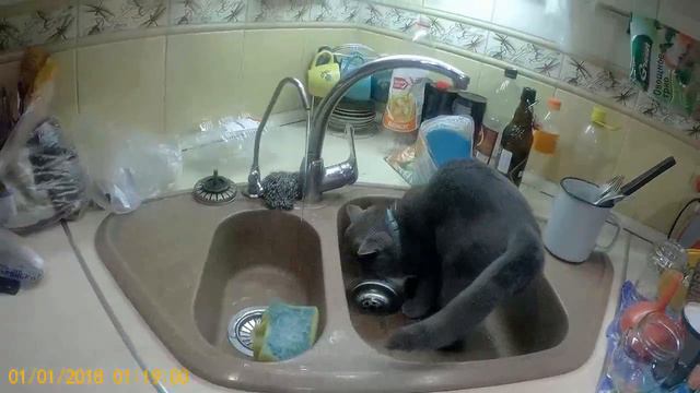кот в раковине