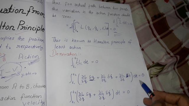 lagrange equation from hamilton principle (hindi)
