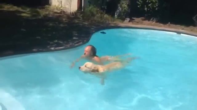 Golden Bruno en la piscina