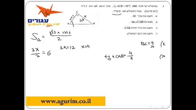 הכנה לבגרות במתמטיקה -801 - מאגר בגרות טריגונומטריה - תרגיל 5