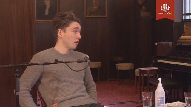 Matthías Tryggvi Haraldsson og Hákon Jóhannesson ræða saman.