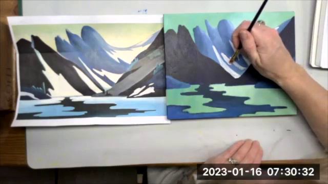 Lake Agnes wk2 - How to paint from a photograph Lawren Harris style